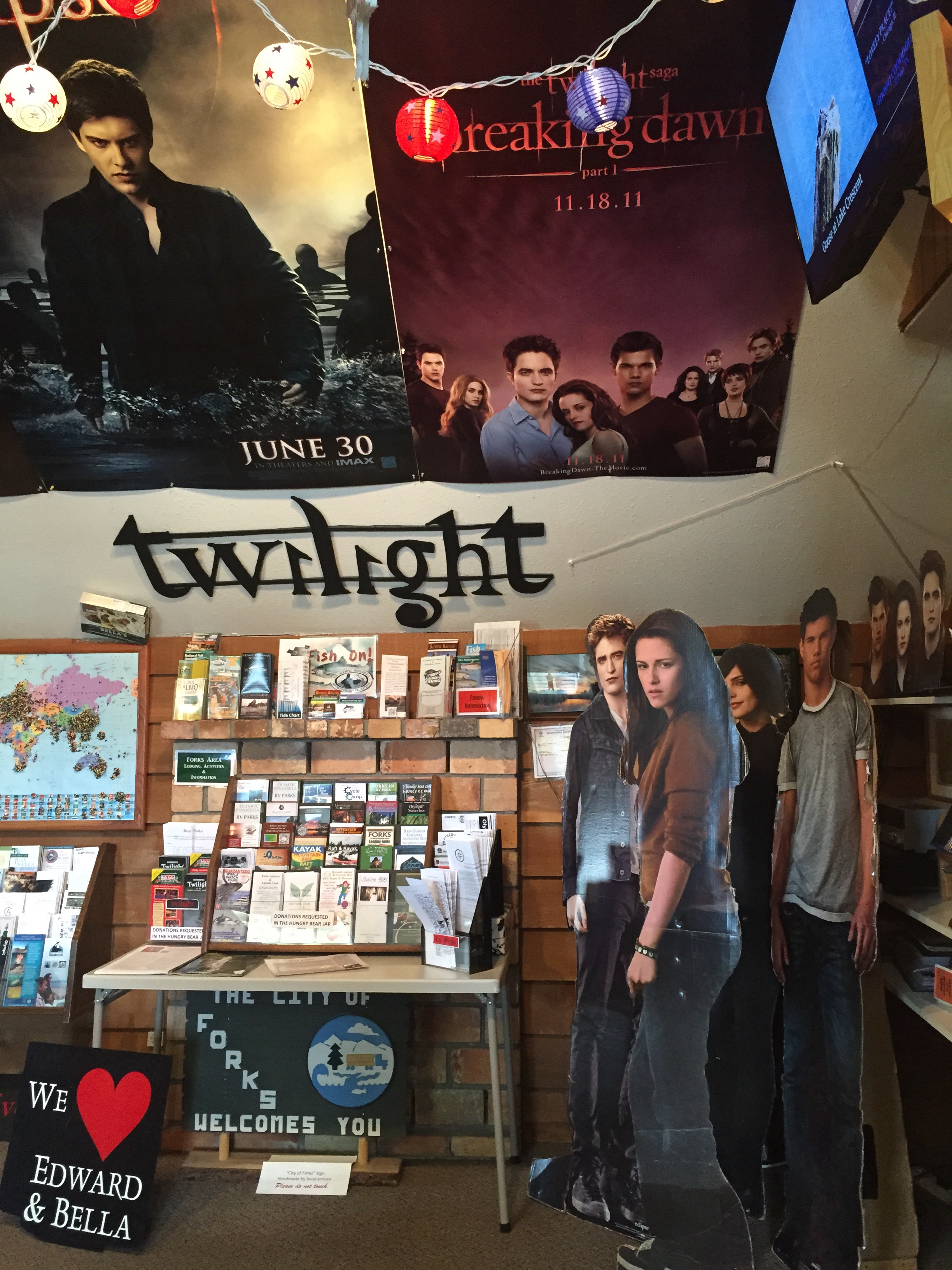 After Ruby Beach we continued north. We came into Forks, WA. Now, for those of you unfamiliar with this place, the Twilight Series kind of put this place on the map. The fantasy romance novels were based in Forks Washington. The movies, on the other hand, were not filmed entirely in this town. There was a scene filmed in Forks and another scene filmed at “La Push” which is a beach just north of Forks. Other than these two sites, I believe most of the movies were filmed in Canada. Well, that did NOT stop Forks from capitalizing on whatever they could from the movie.